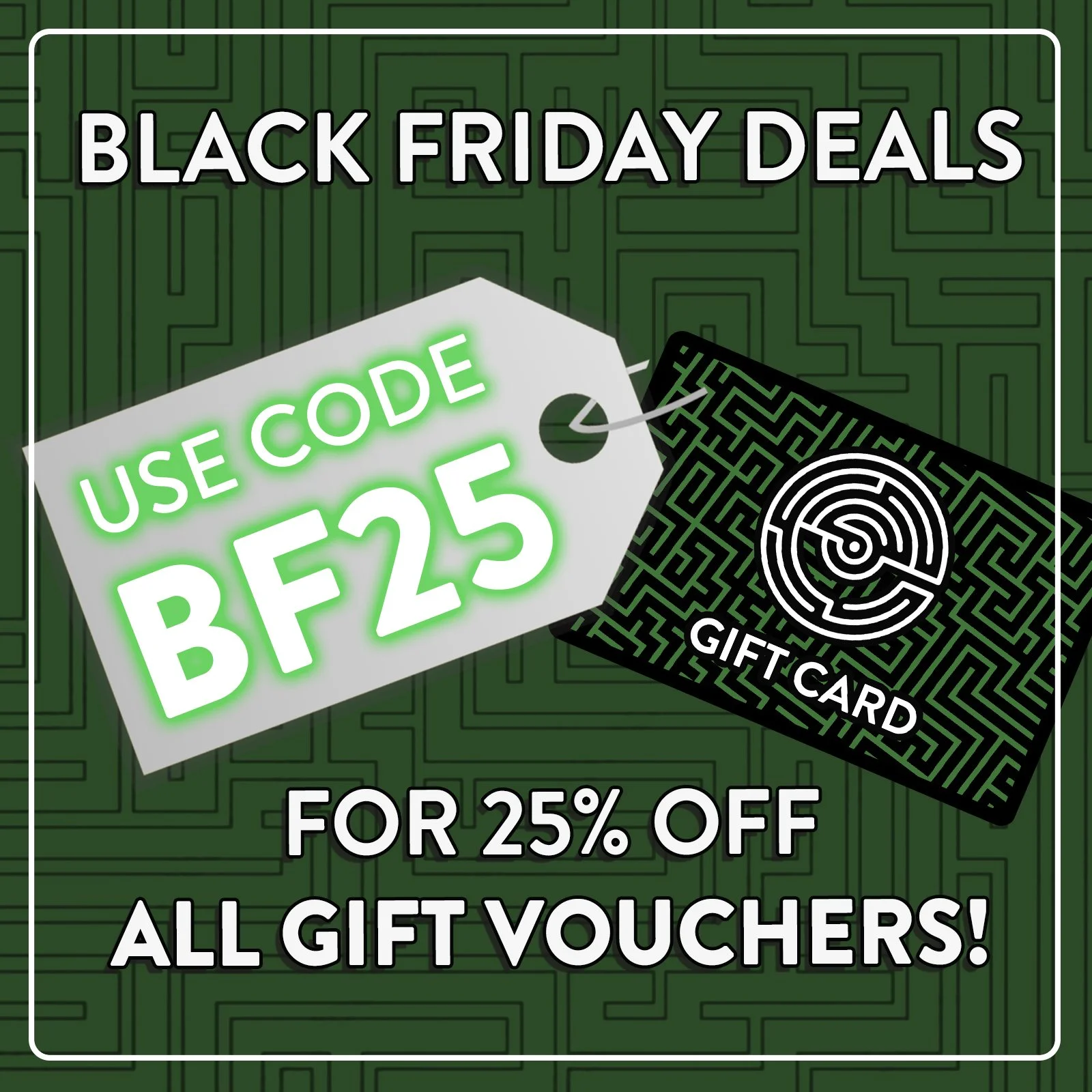 Our biggest deal is live! For a limited time, all Escape Room Gift Vouchers are 25% OFF. Give the gift of adventure, mystery, and unforgettable fun—perfect for friends, family, coworkers, or anyone who loves a challenge.